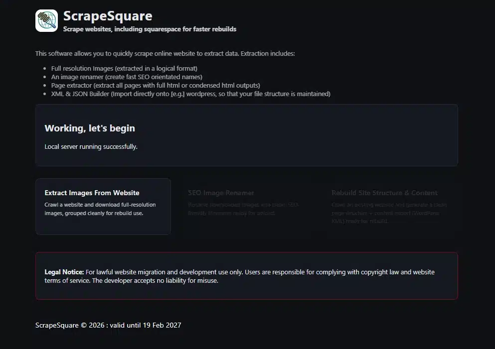 Image Downloader, ScrapeSquare, is a powerful desktop tool designed for web designers, developers, and digital professionals who need to rebuild, redesign, or analyse existing websites. With just one URL, the software crawls a website, downloads its images, groups them intelligently, and prepares them for immediate use in a redesign project.